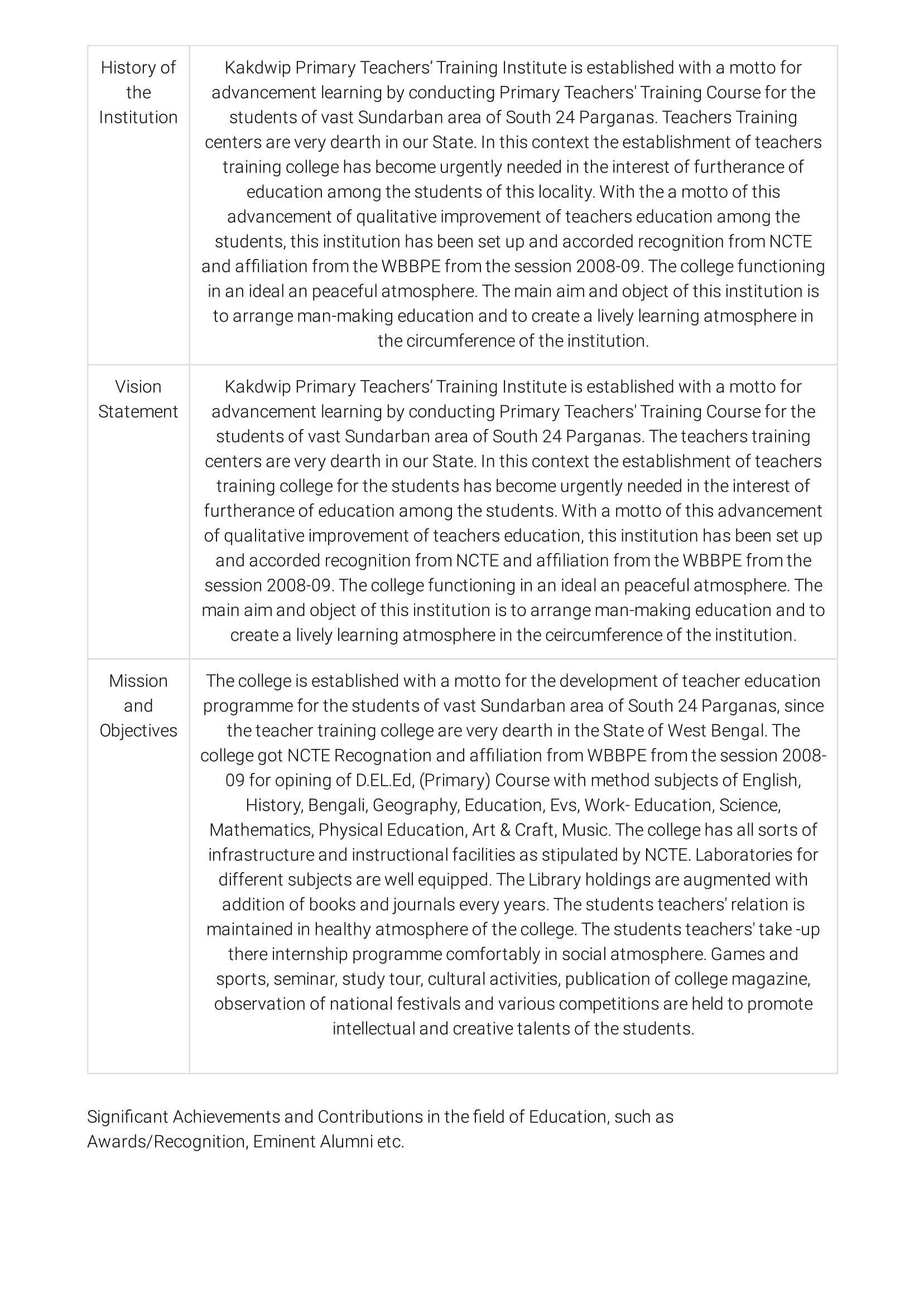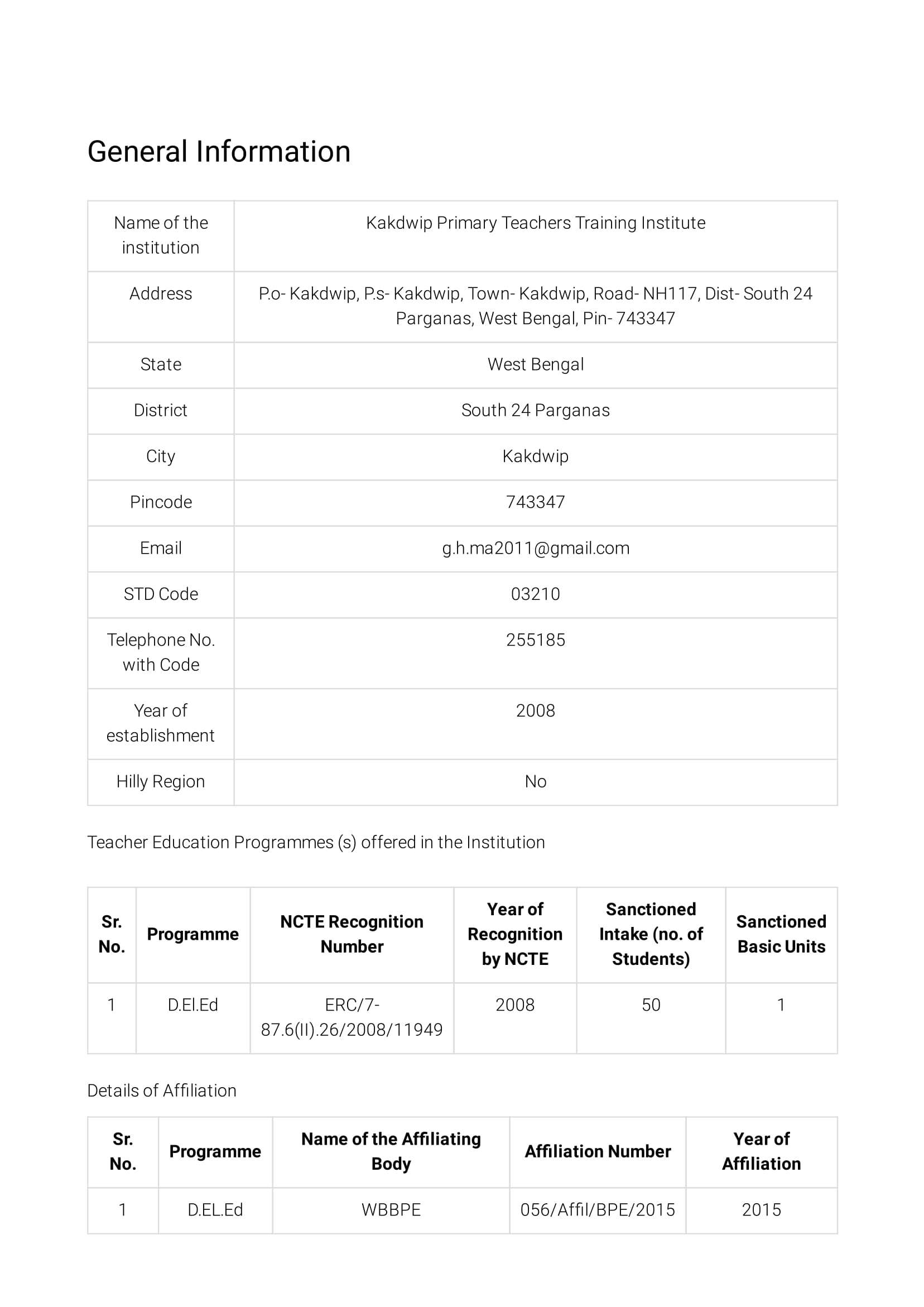 Address : KAKDWIP PRIMARY TEACHERS TRAINING INSTITUTE