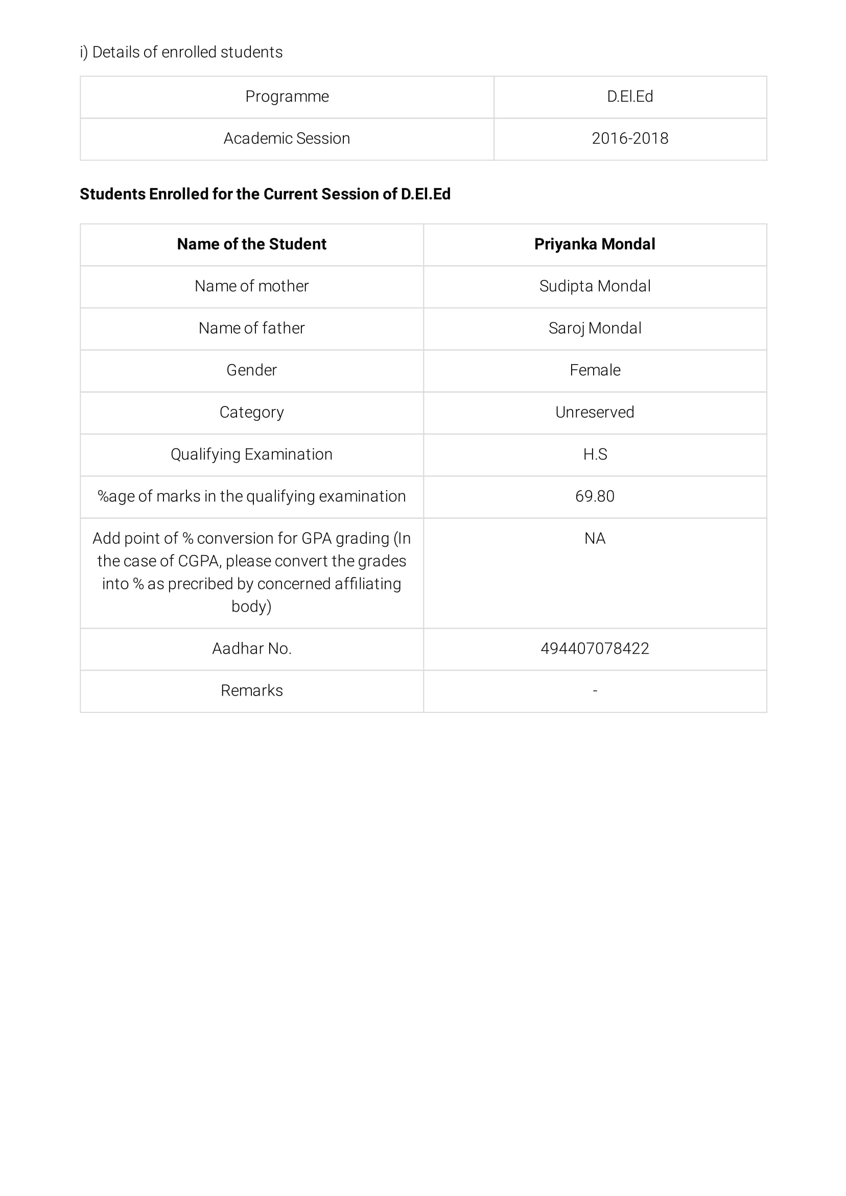 NOC of D.El.Ed (WBBPE)